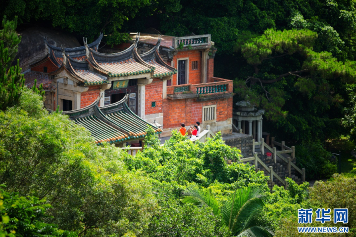 图为绿树掩映的草庵。新华网发(赖进财 摄)